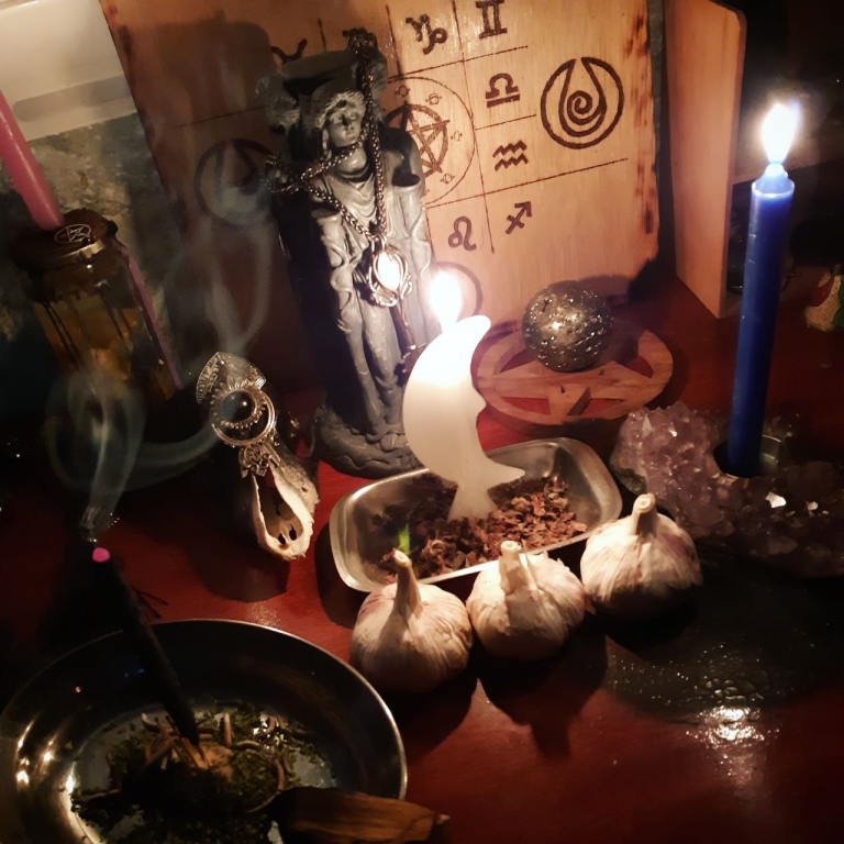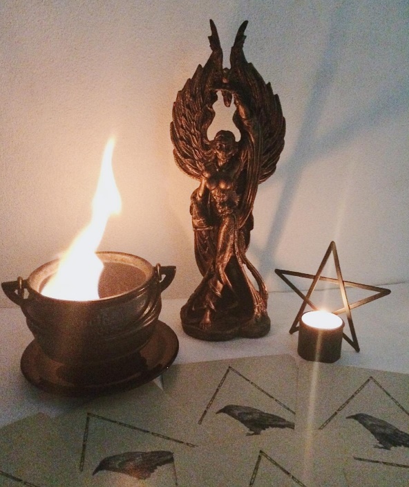 “Chamo pela Senhora das Encruzilhadas, Grande Hécate, peço que me ouça! Senhora, nos Ilumine com tuas tochas! Nos ajude a ver o caminho. Senhora, nos abra a mente com tuas Chaves, pois assim teremos sagacidade para entender o caminho! Senhora,…